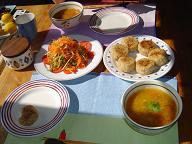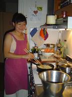 「日本に帰る前に遊びにおいで~」ってメールしたら、本当に来てくれた金魚姫。彼女はブリュッセルにあるマクロビオティックのお店でお料理をしている。この春には私が彼女のアパートにお邪魔した。ちょうどブリュッセルで「GMOフリーゾーン自治体会議」があったから泊めてもらったのだ。あの時もおいしい手料理をご馳走になったけれど、今回はわが家のキッチンで腕をふるってくれた。