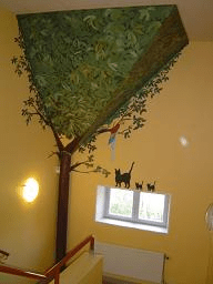 シャースティンが子どものころ通った古い学校の二階で。