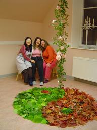 私たちは落ち葉で陰陽の印を学校の床にかたどった。